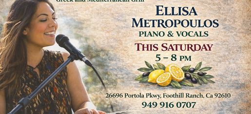 Join us for a beautiful evening of live piano & vocals with Ellisa Metropoulos 🎶